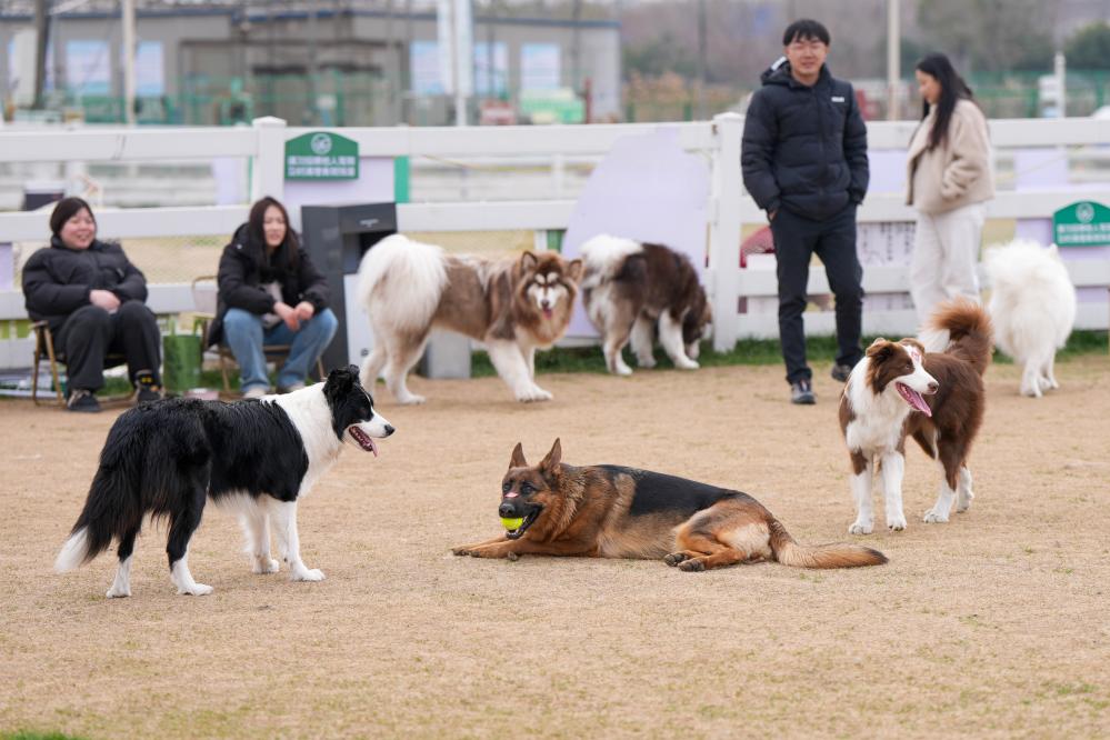 2月10日,市民带着宠物在南京市“毛孩岛”宠物乐园内休闲游玩。