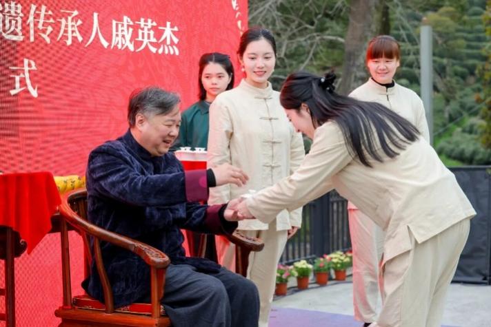 江南三月,茶香满园。时值2026年西湖龙井春茶开采前夕,3月16日下午,以“传承·启新”为主题的戚英杰大师工作室剪彩仪式暨传统拜师礼在杭州市西湖区龙井村83号举行。这一非遗传承新阵地的落成,标志着西湖龙井手工制茶技艺保护传承迈入“活态育人、科技赋能”的新阶段。