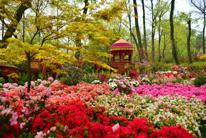 展会精心打造四大核心展区,汇聚全国十余省份200个品种、3万余株地栽杜鹃,铺就漫山浪漫花海。2万余平方米的“万象春晖”杜鹃专类园,尽显繁花盛景。十大杜鹃知名产地城市主题展点各展风姿,苏杭锡常四城尽显吴越文脉底蕴,麻城、贵州展区展现世界级原生杜鹃风貌,本地展区更是融入范公精神,彰显地域文化特色。同时,展会还设杜鹃花新优品种展、杜鹃盆景展,集中展示全国布展创新成果与多地精品杜鹃盆景,尽显杜鹃园艺艺术魅力,实现赏花游览、研学科普、文创体验、产业交流多维融合。