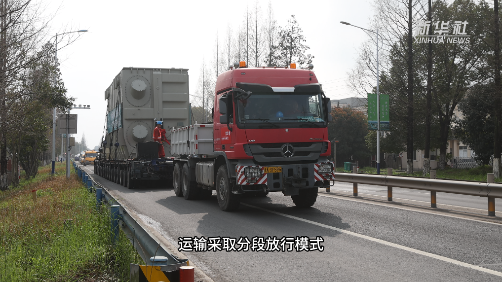 为最大限度减少对社会交通的影响,运输采取分段放行模式,国网浙江电力工作人员协同属地交警部门分两次进行对向车道临时封闭作业,疏导社会车辆先行。