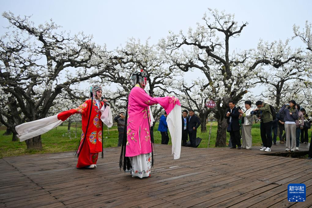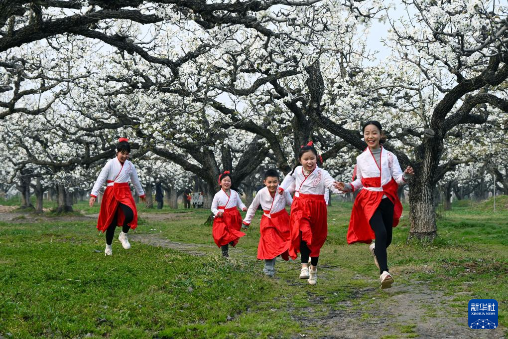 眼下,安徽省宿州市砀山县50万亩梨树迎来盛花期,千树万树梨花如云似雪,漫野飘香。丰富多彩的活动在梨园上演,吸引各地游客前来踏青赏花。