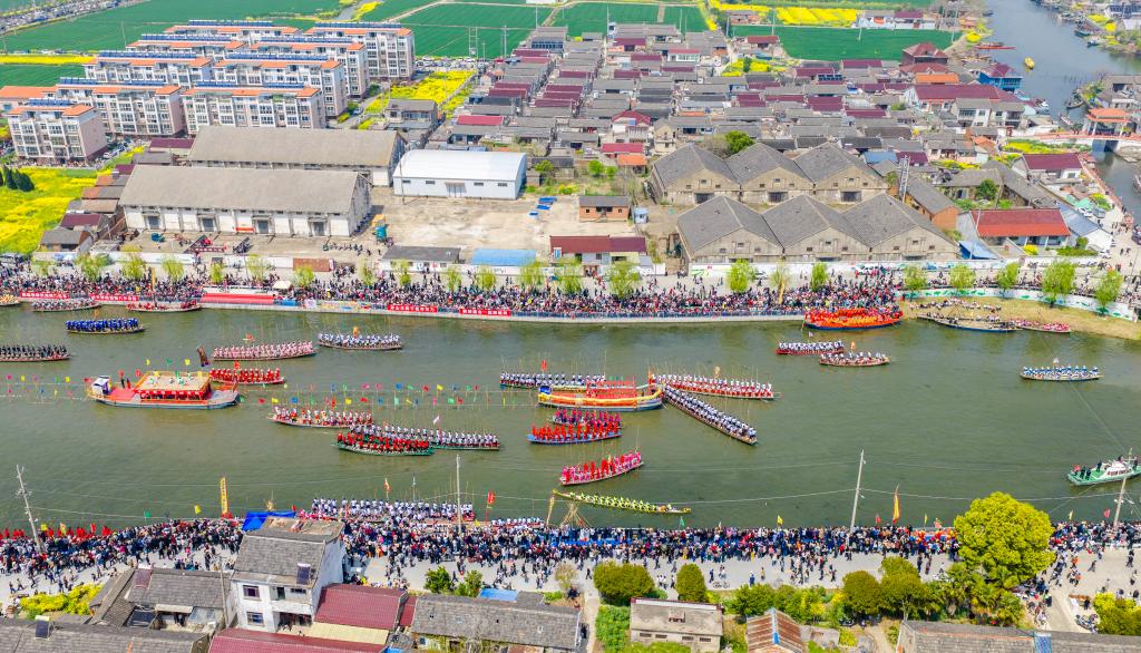 4月5日,选手参加茅山会船盛会(无人机照片)。