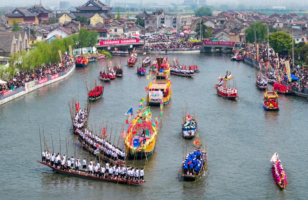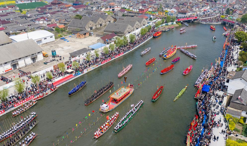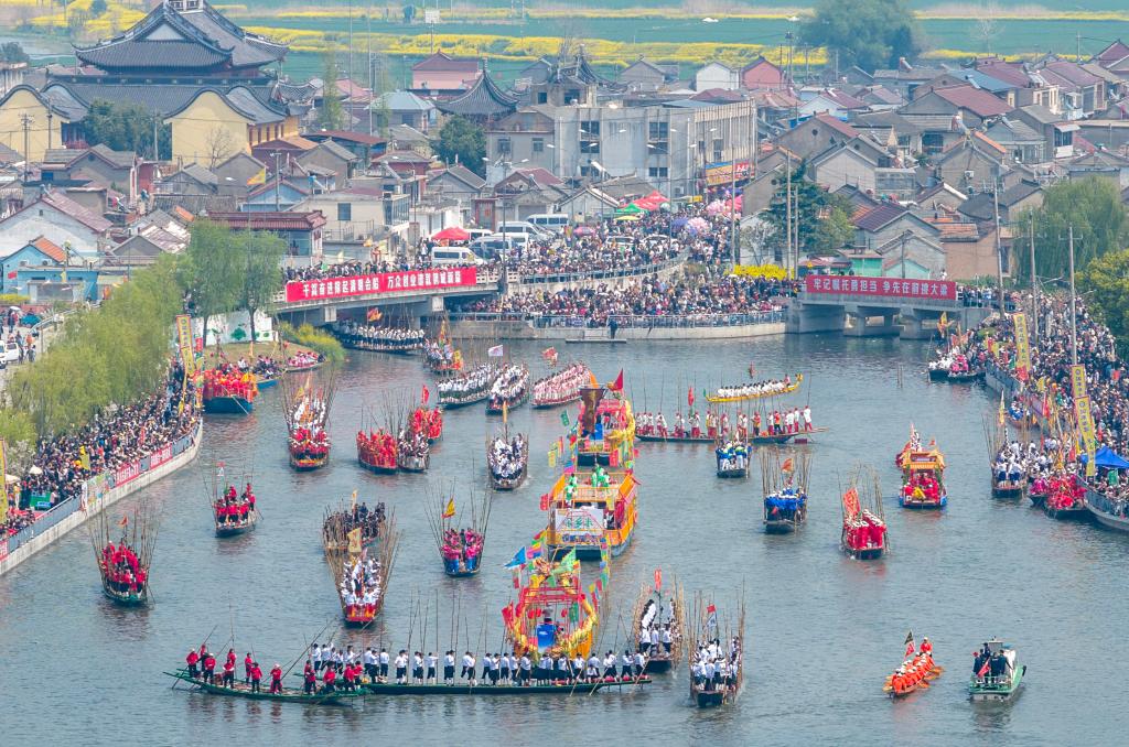 4月5日,江苏省兴化市举行一年一度的茅山会船盛会。船只和选手齐聚茅山西大河,参加竞技和表演。茅山会船始于南宋,2014年被列入国家级非物质文化遗产名录。