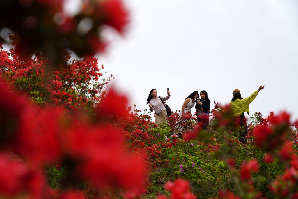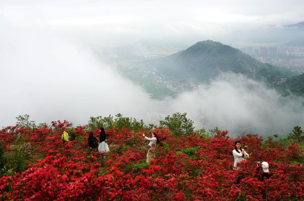 4月12日,人们在浙江省乐清市虹桥镇白龙山赏花游玩。