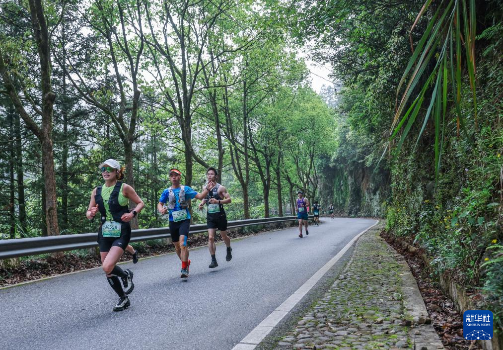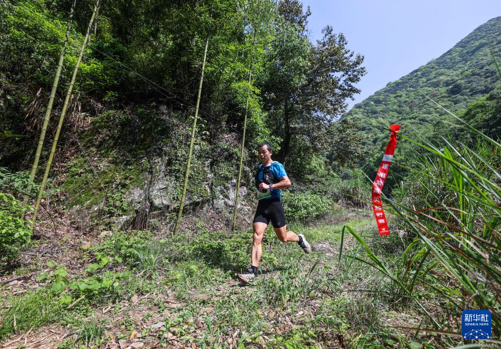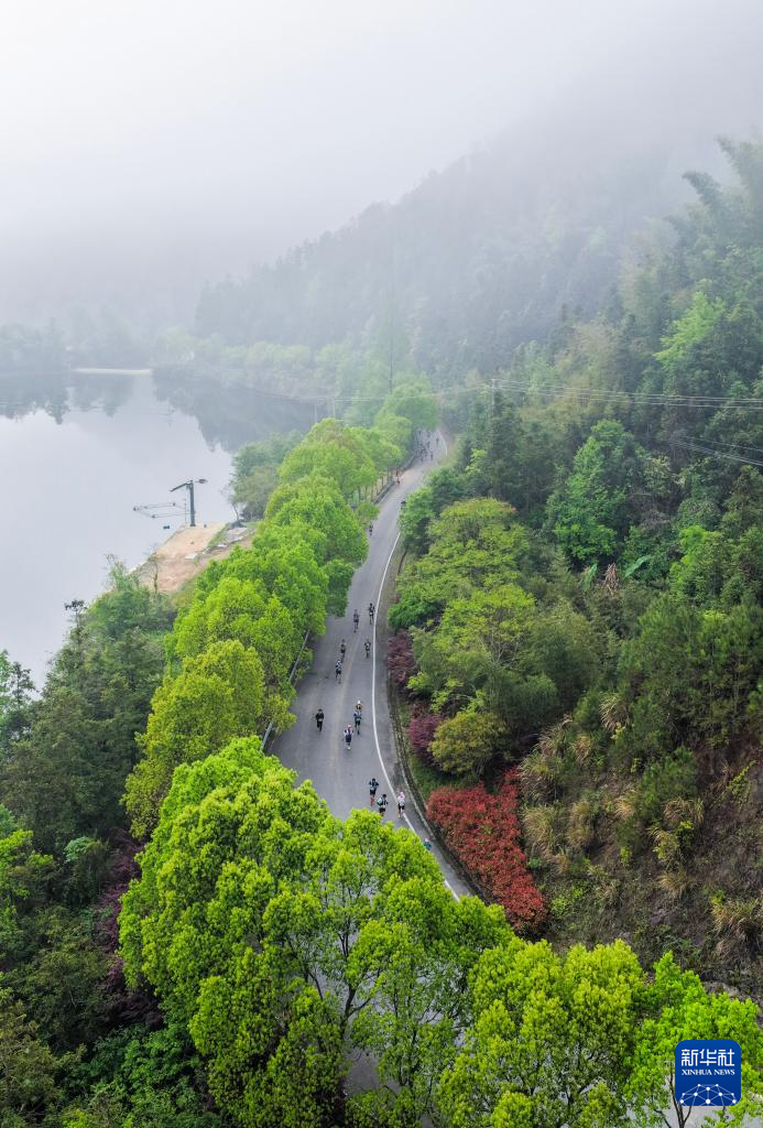 4月19日,选手们奔跑在山野间(无人机照片)。