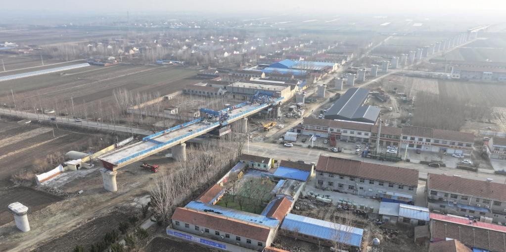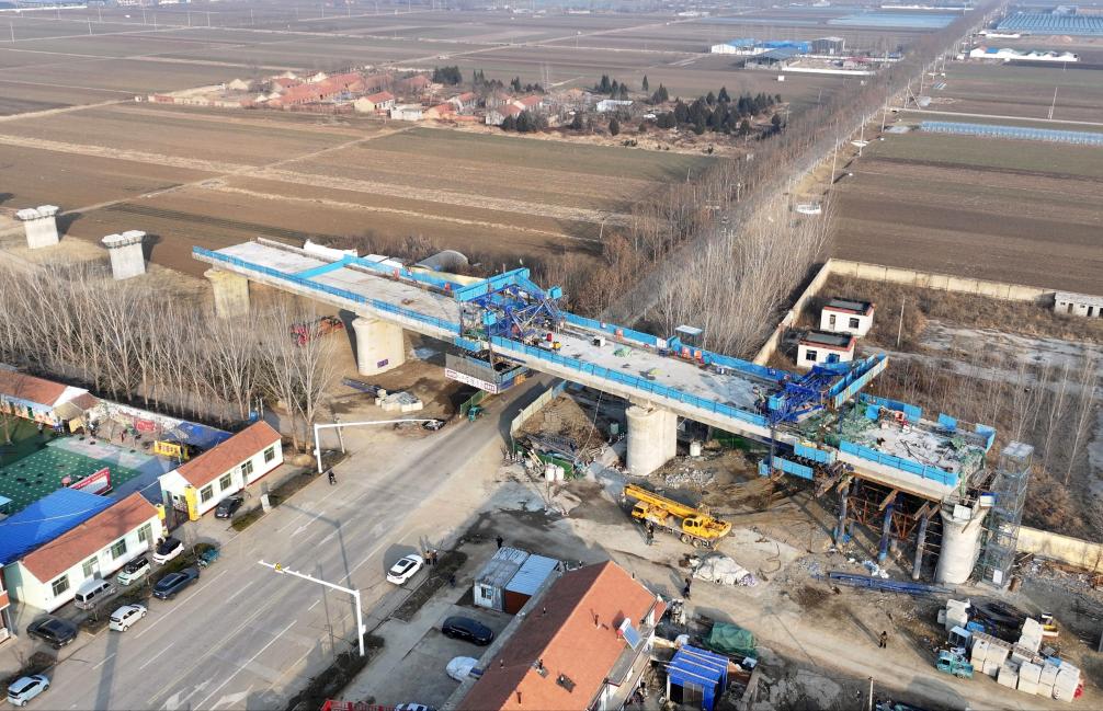 12月30日拍摄的潍宿高铁安丘渠河特大桥连续梁(无人机照片)。