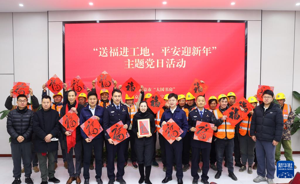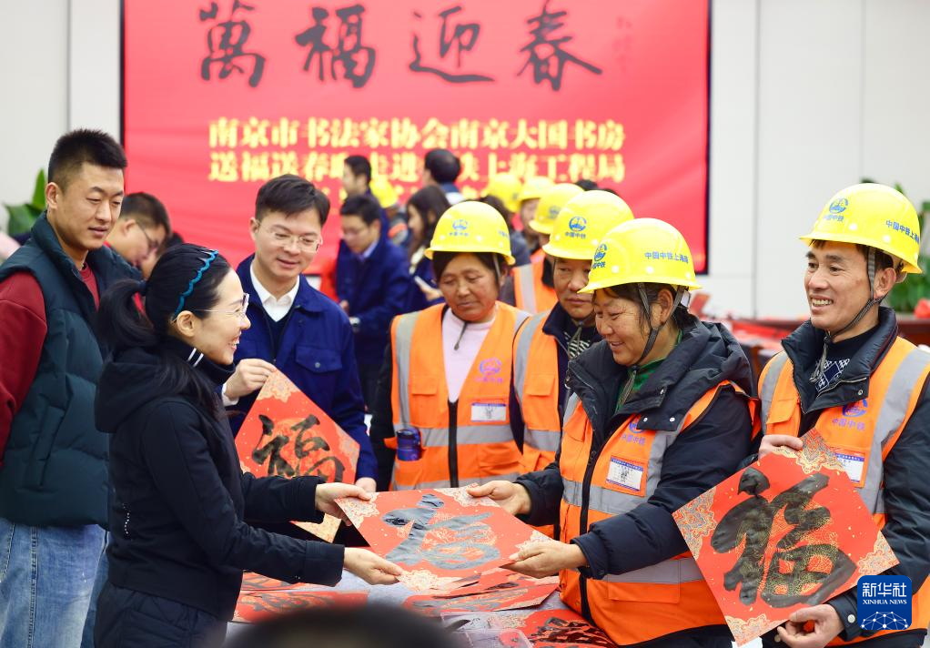 南京市永宁街道派出所民警带来“节前安全防范与权益保障”专题课,通过真实案例剖析、实用技巧讲解,为工人们筑牢安全生产与权益保护“防火墙”。来自书法协会的书法家们现场解读福字文化渊源、传授毛笔书写技巧,还结合项目建设与属地特色创作专属福字与春联,带着特色美好祝福的书法作品受到工人们的欢迎。