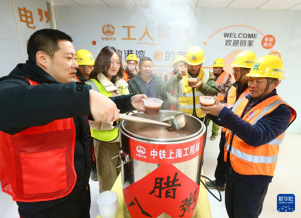 送福环节结束后,项目青年团员与属地永宁街道高丽社区志愿者们将精心熬制的腊八粥送到每一位工人手中。工人们接过腊八粥,脸上洋溢着朴实的笑容,感慨一碗腊八粥让他们在异乡感受到了家的温暖。