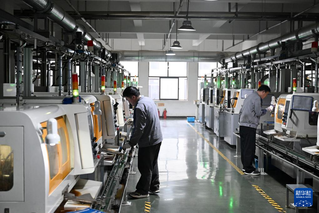 3月6日,在灵璧轴承产业园内的一家企业,工作人员在轴承钢球生产线上忙碌。