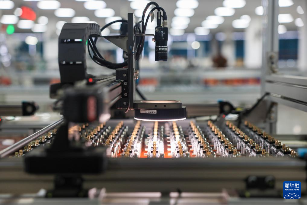3月16日,在江苏省靖江市西来镇的江苏沙龙机电科技有限公司生产车间内,电子元件自动检测线正开展检测作业。