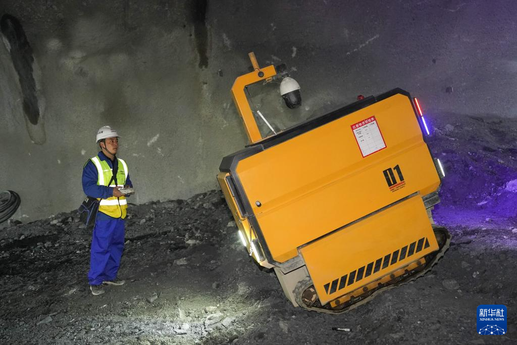 3月29日,工作人员操作智能化一体安全监控机器人在沪宁合高铁丰山隧道内作业。