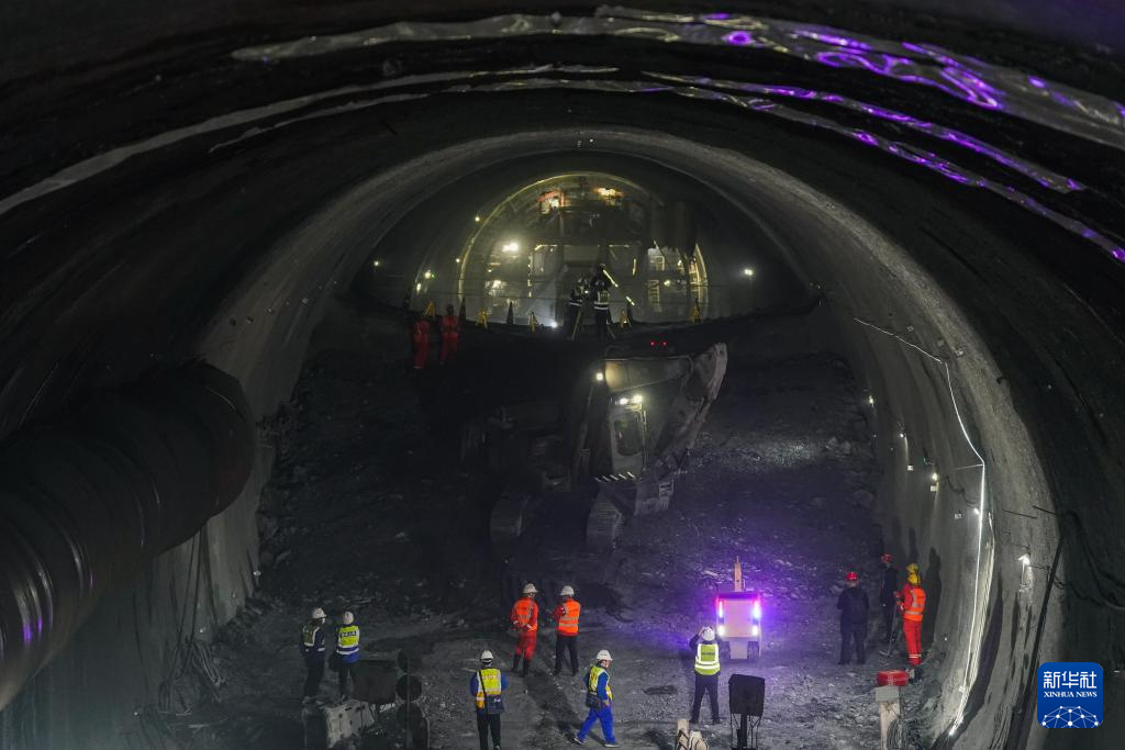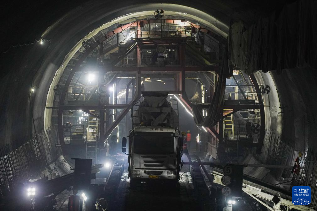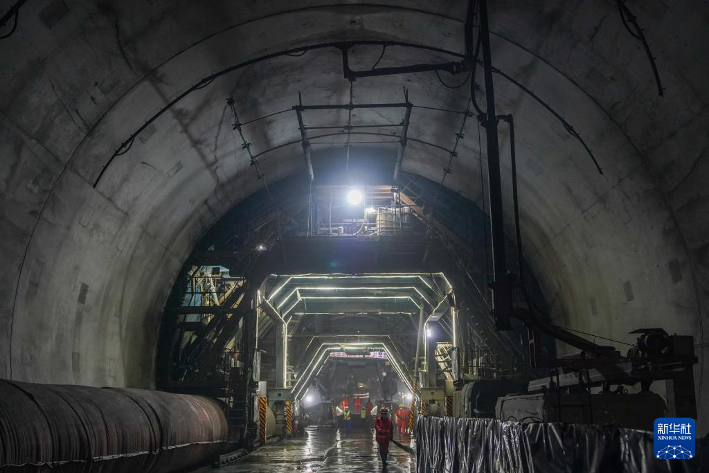 3月29日,工作人员在沪宁合高铁丰山隧道内施工。