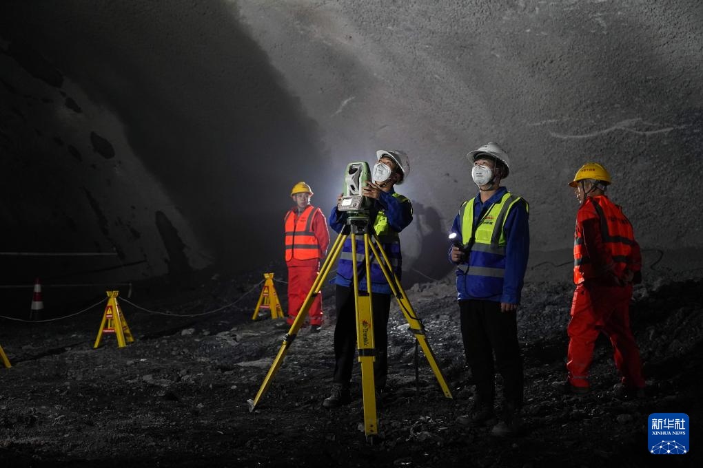 3月29日,工作人员在沪宁合高铁丰山隧道内测量。