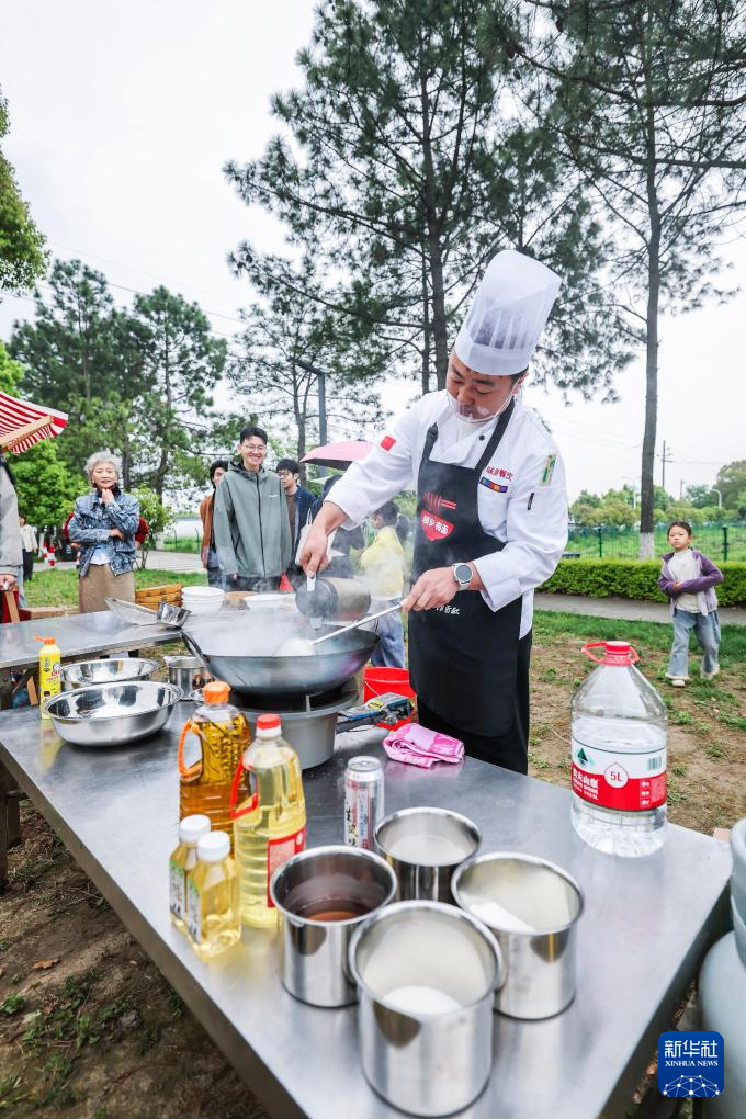 4月11日,浙江省桐乡经济开发区(高桥街道)三村村举办“桐乡面”暖心擂台赛活动。来自企业食堂和乡村的大厨以及烹饪爱好者开展了桐乡面烹饪比拼。