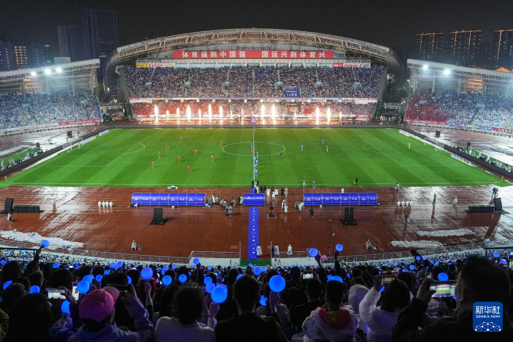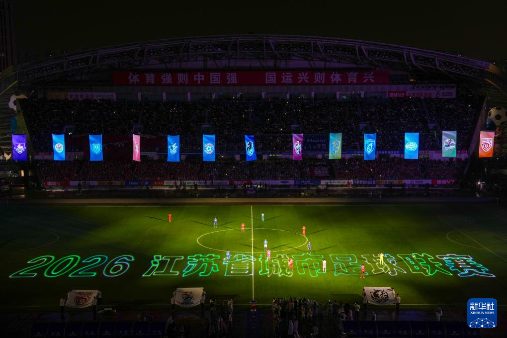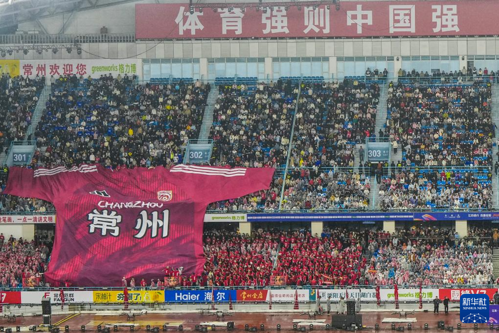 4月11日,2026江苏省城市足球联赛(简称“苏超”)揭幕战在常州奥体中心体育场举行,常州队主场3比0战胜南通队。